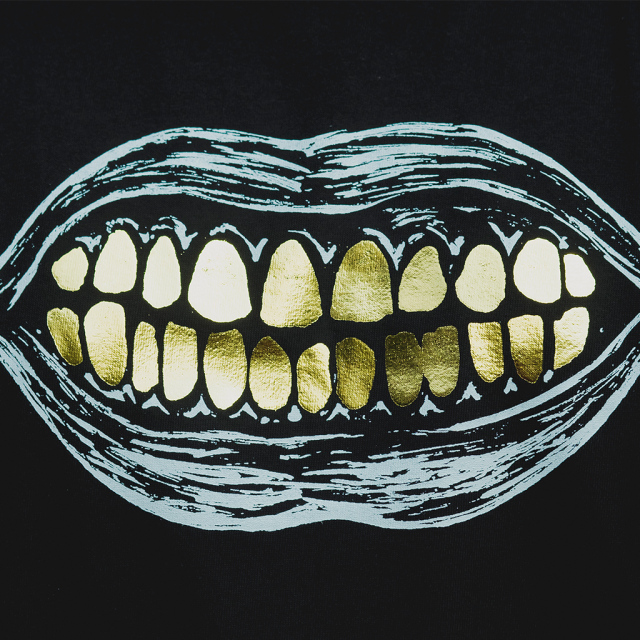 ※Gold leaf is used for the "teeth" print. The gold leaf may peel off due to friction. Please check the label for washing instructions.