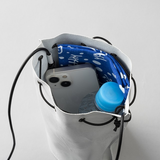 DescriptionMade in Higashikagawa City, Kagawa Prefecture, one of the world’s leading areas for producing leather products, this item’s color is inspired by the concrete and Yakisugi (charred cedar) used in the architecture of Naoshima. Handmade using traditional methods, the cow leather is treated with a water-repellent finish, making the item light yet durable.